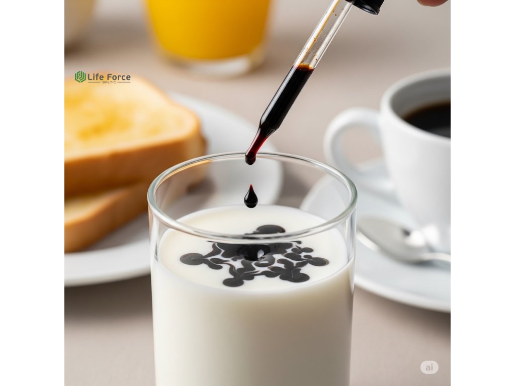 - Doporučené dávkování pro dospělé: 4 až 5 kapek roztoku zamíchejte do sklenice s vodou, 1 až 2 krát denně. Užívejte před jídlem, během jídla nebo po jídle.